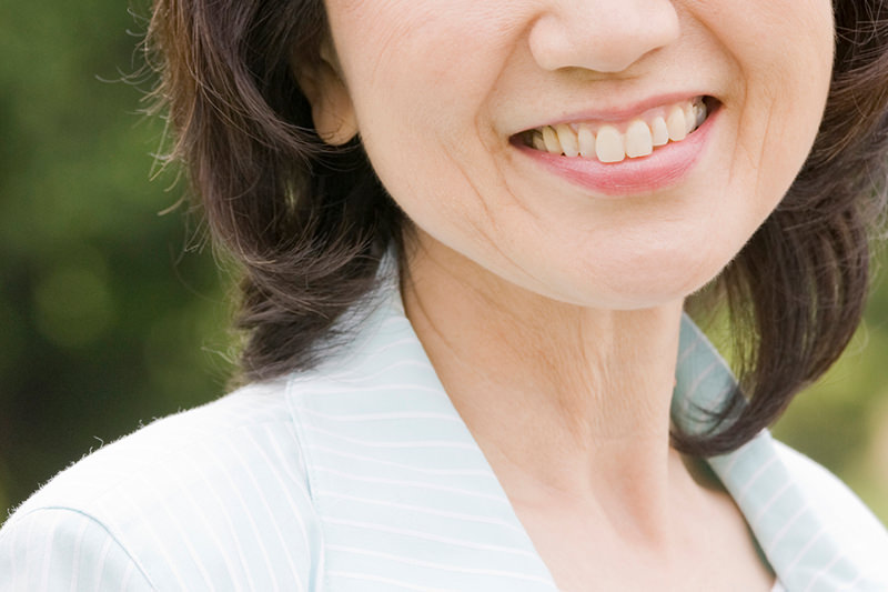 加齢にともない歯の表面(エナメル質)が少しずつ削られていき、内側の象牙質が透けて、黄ばんで見えること、また象牙質自身が変色します。